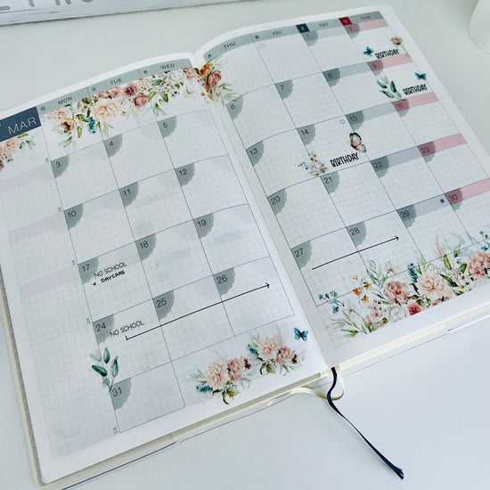 Our Hobonichi Cousins Monthly Kits are designed to elegantly highlight each day with beautiful floral deco. Perfect for tracking important dates, school holidays, and monthly finances, these kits help you see the essentials at a glance while adding a touch of sophistication to your planner.