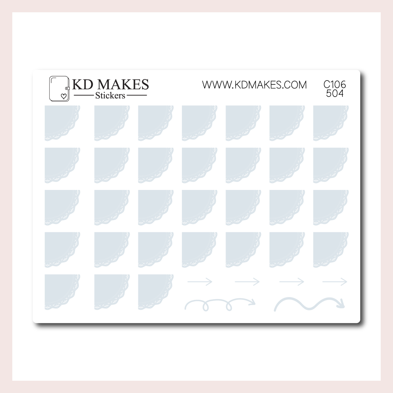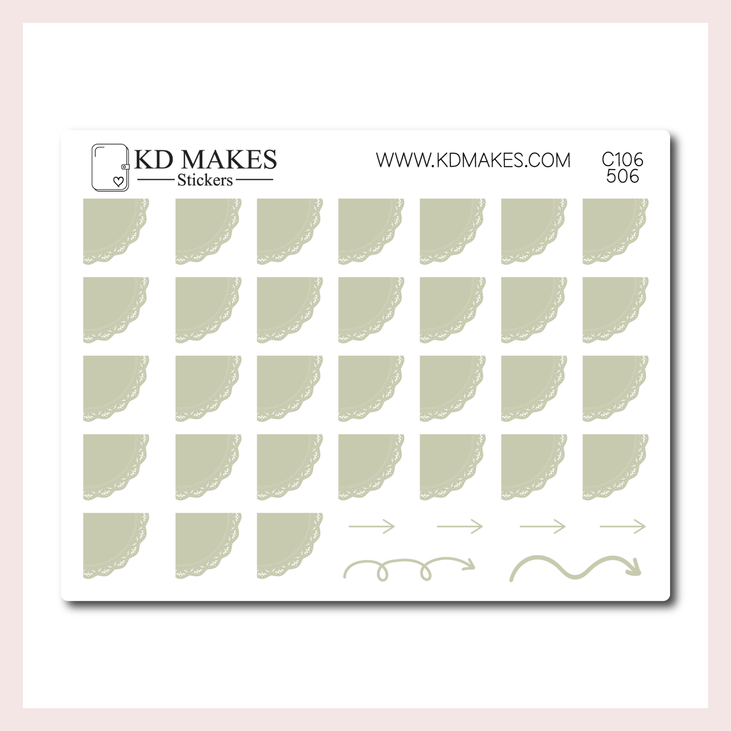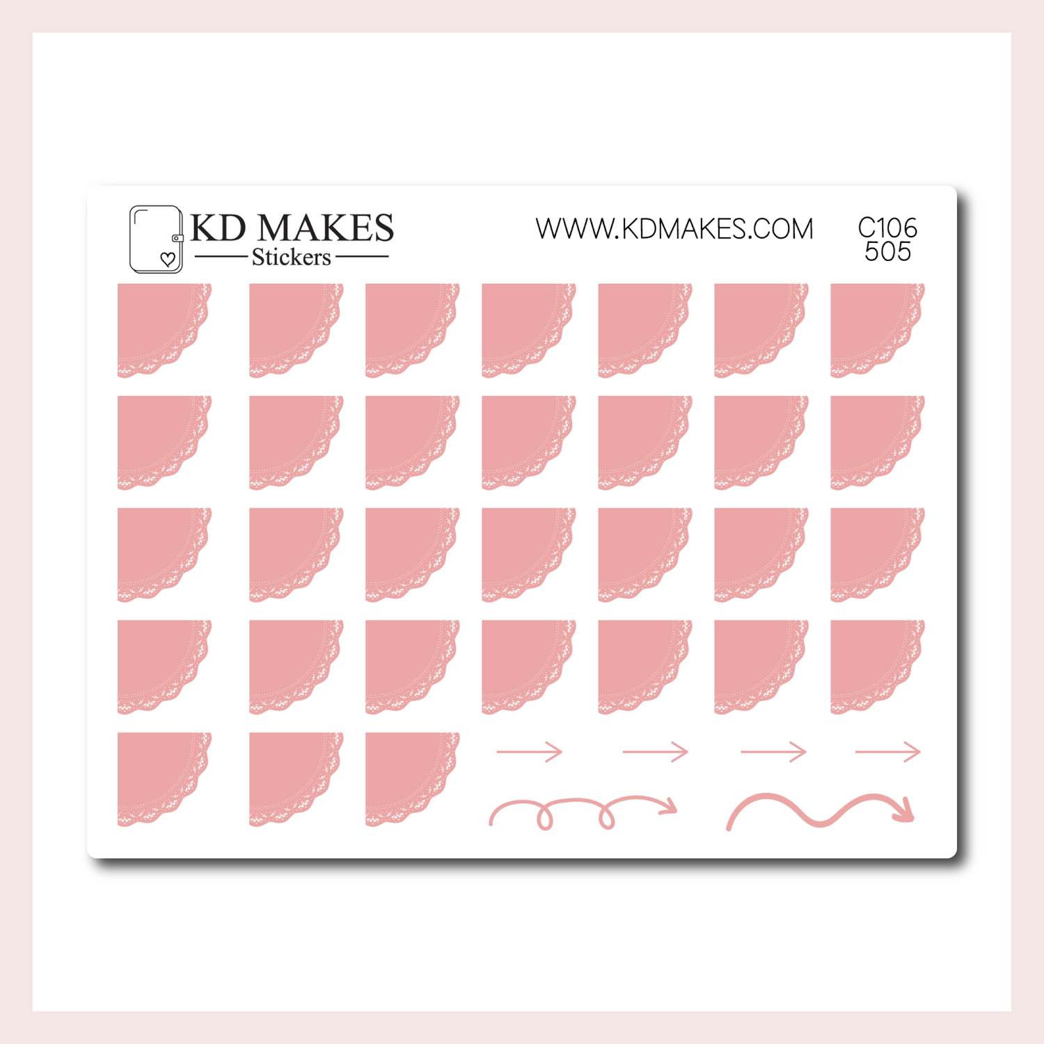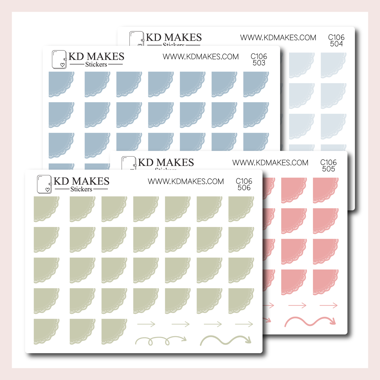 C106 | SET OF 4 QUARTER CIRCLE LACE DATE COVER | 0.5" | A PLANNERMONKEYCO (PMC) X KDM COLLAB