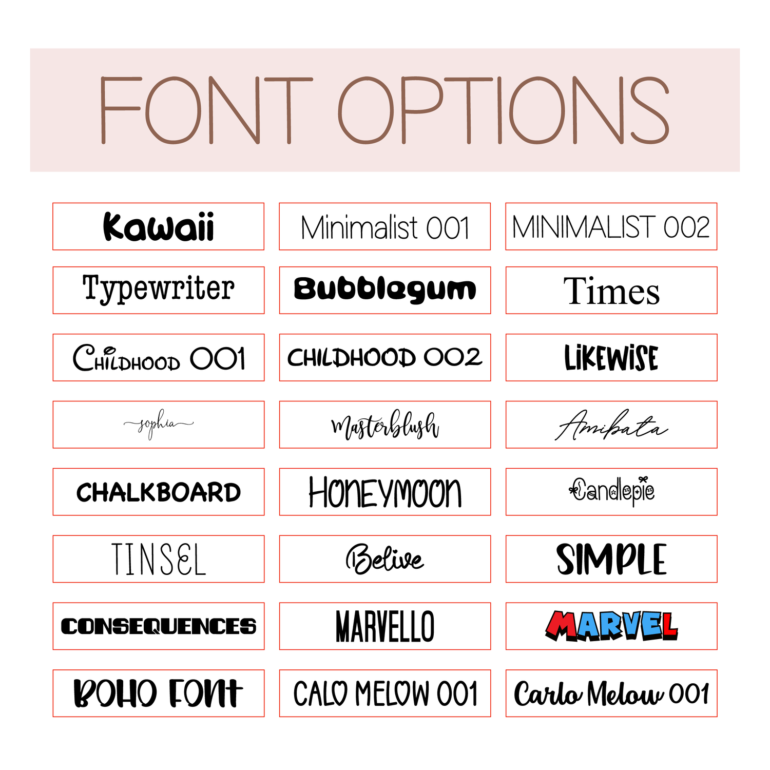 ** Please understand that the numbers per sheet above are estimated depending on your font style and script. If you are wanting a script in a specific size please add this in the notes including the below specifications: