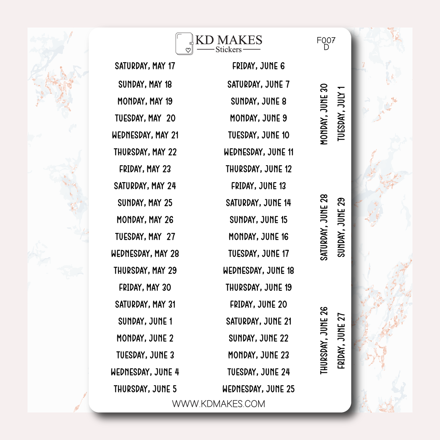 F007 | 2025 Daily Date Strips | Calo Melow