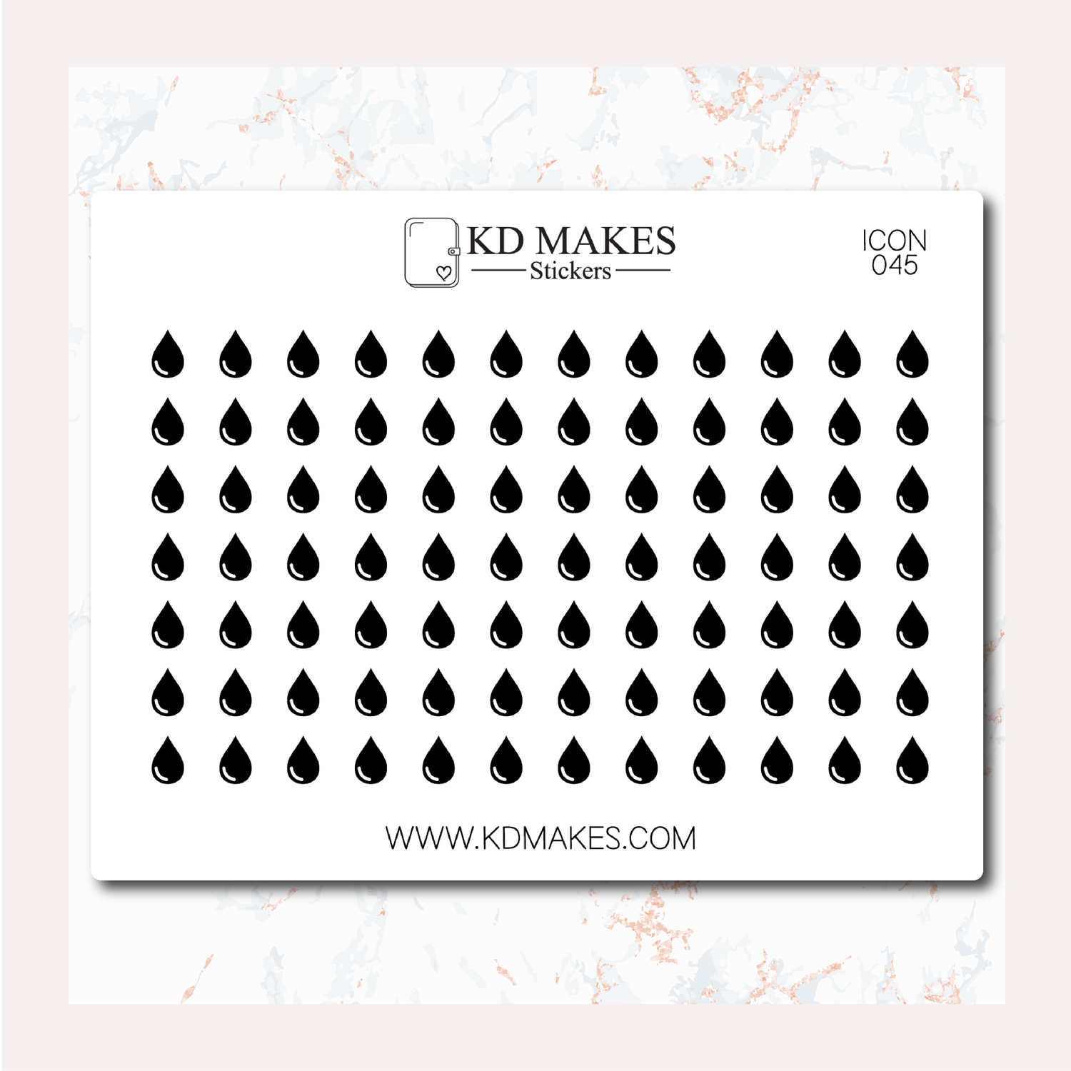The mini icons come in square kiss cut sizes of 0.24 x 0.24" and feature a total of 170 stickers per sheet. Similarly, the small icons are also square kiss cut, but slightly larger at 0.35 x 0.35" and have 84 stickers per sheet.